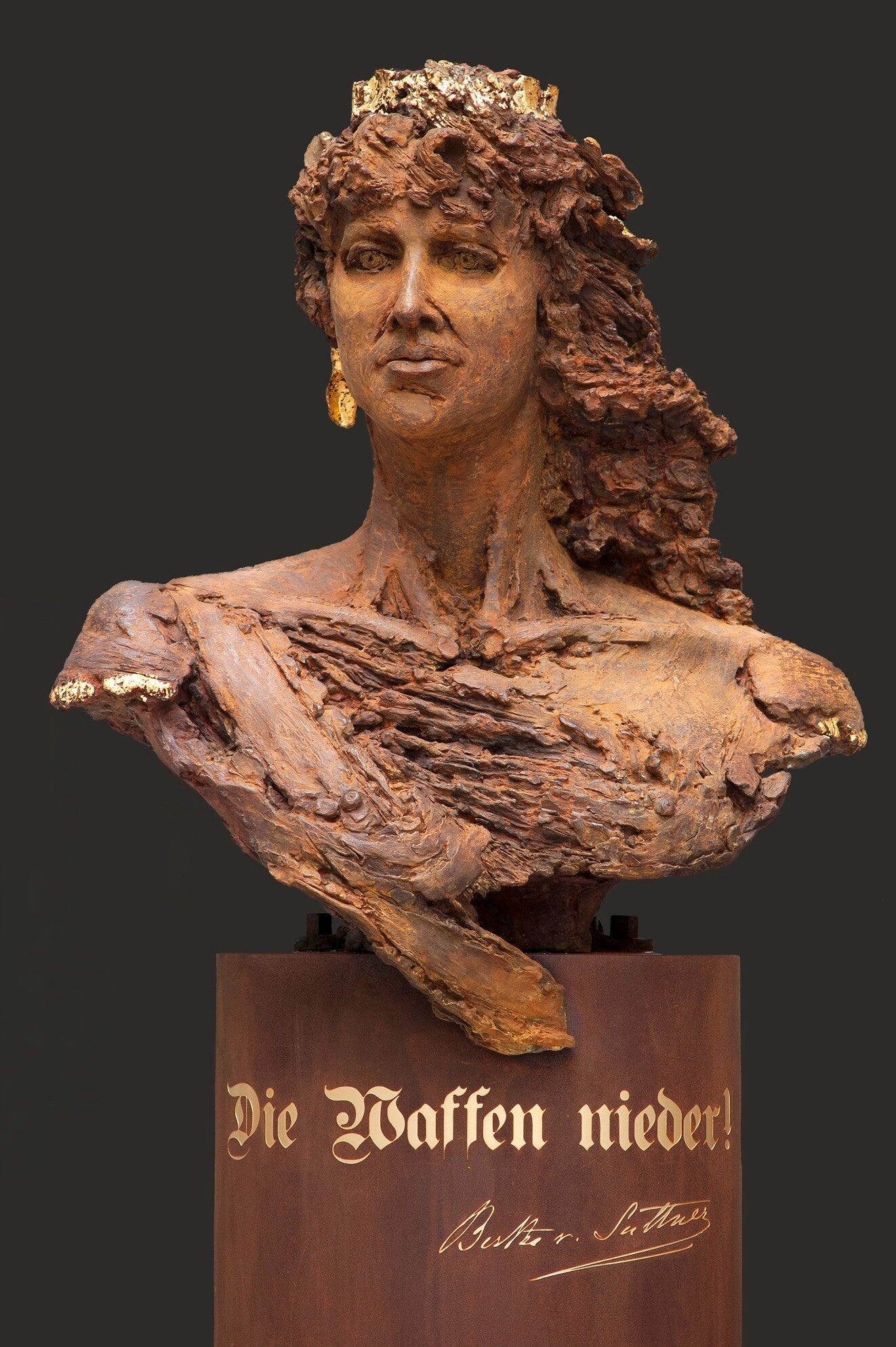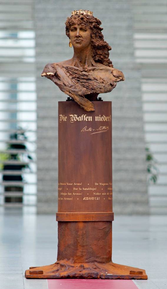 Ingrid Rollema is ter ere van het 100-jarig bestaan van het Vredespaleis, 28 augustus 2013, gevraagd een beeld van Bertha von Suttner te maken